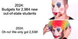 Much of this information is from an article in the student newspaper, the Daily Emerald. The administration is claiming a deficit because out-of-state enrollment did not meet targets. Let’s look …